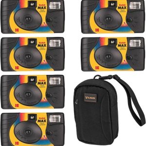 Max One-Time Use 35mm Film Camera (ISO-800) with Power Flash, 27 Exposure, 6-Pack, Bundle with Slinger Brand Camera Bag